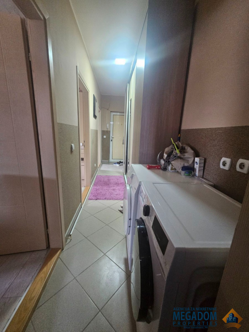 Struktura stana: dugačak hodnik, 2 sobe, kuhinja sa trpezarijom, kupatilo.